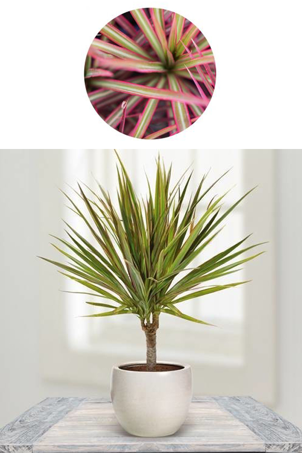 Mô tả: When looking to add a splash of color to your greenery, dracaena marginata is a perfect choice. This newer variety ‘Colorama’ is stunning with its bright magenta, green and cream variegation. Incredibly easy to maintain, this plant can grow to fit spaces of virtually any size, from a 4-inch container to a 6-foot tree.