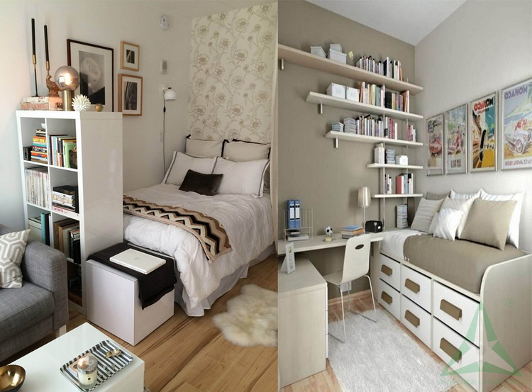For limiting all kind of shelfs, if the "open-air" furniture takes up space, it’ll be possible to choose the space under the bed as the storage cabinet. You can absolutely buy a bed with a cabinet on the bottom or ask for cabinetmaker.