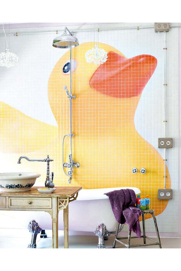 Kids really love cute things and toys. Simply, if you cannot buy some toys for your kids, you can actually put the toys on the bathroom concept. In this case, let us say that you choose Yellow Duck as the character in which you can put a big yellow duck image on the bathroom wall with a white background. Then, you can complete the bathroom with some items such as bathtub, beautiful sink, and showers... |  |