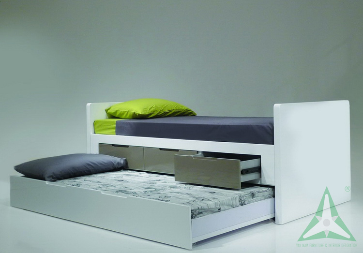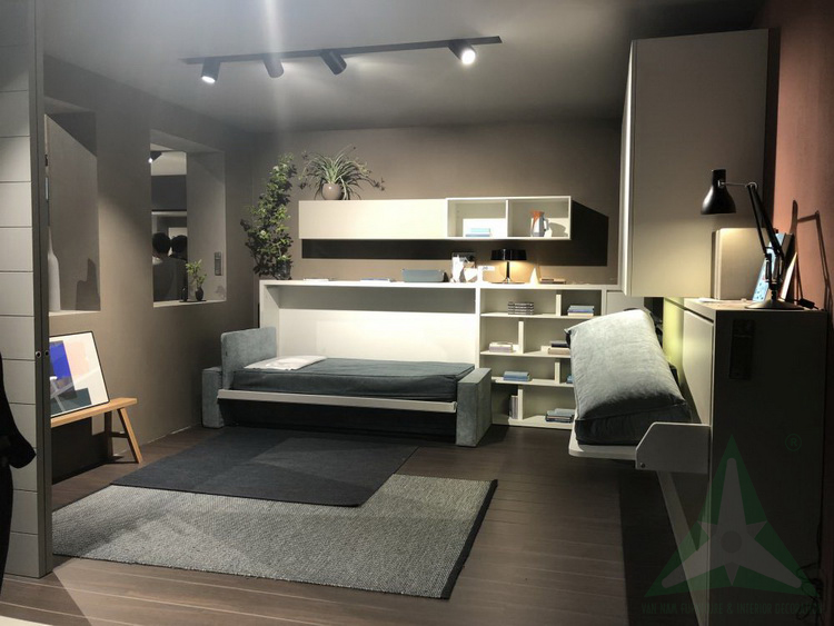 Lifting the heigth of bed allows using both sofa and bed simultaneously as well as creates a suitable view for watching TV. This is a combination set of sofa, shelf and double bed. It’s more amazing that the size, color and style for this product can be customized in according to the owner’s.
