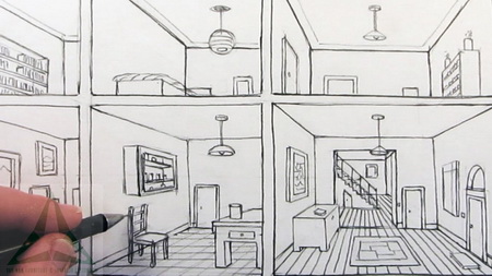 + 2D technical drawing about ceiling - wall - floor.