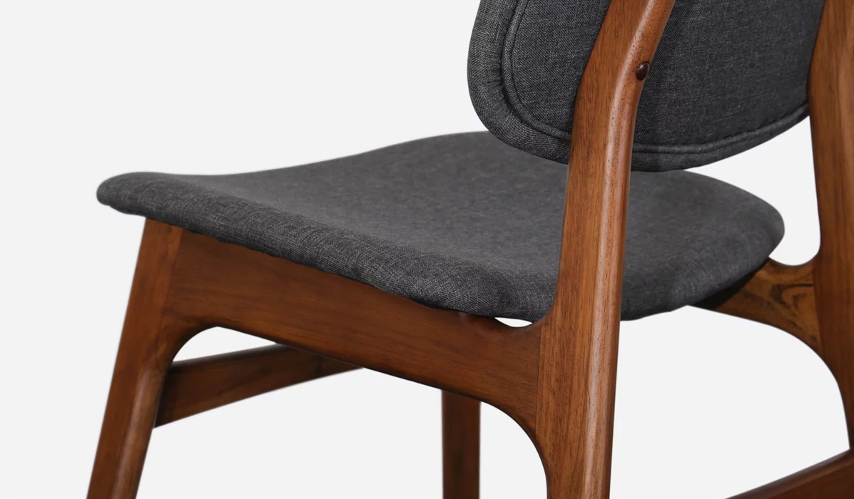 Chân ghế mảnh theo phong cách retro bằng gỗ cao su rắn chắc, mạnh mẽ và tạo sự ổn định. |