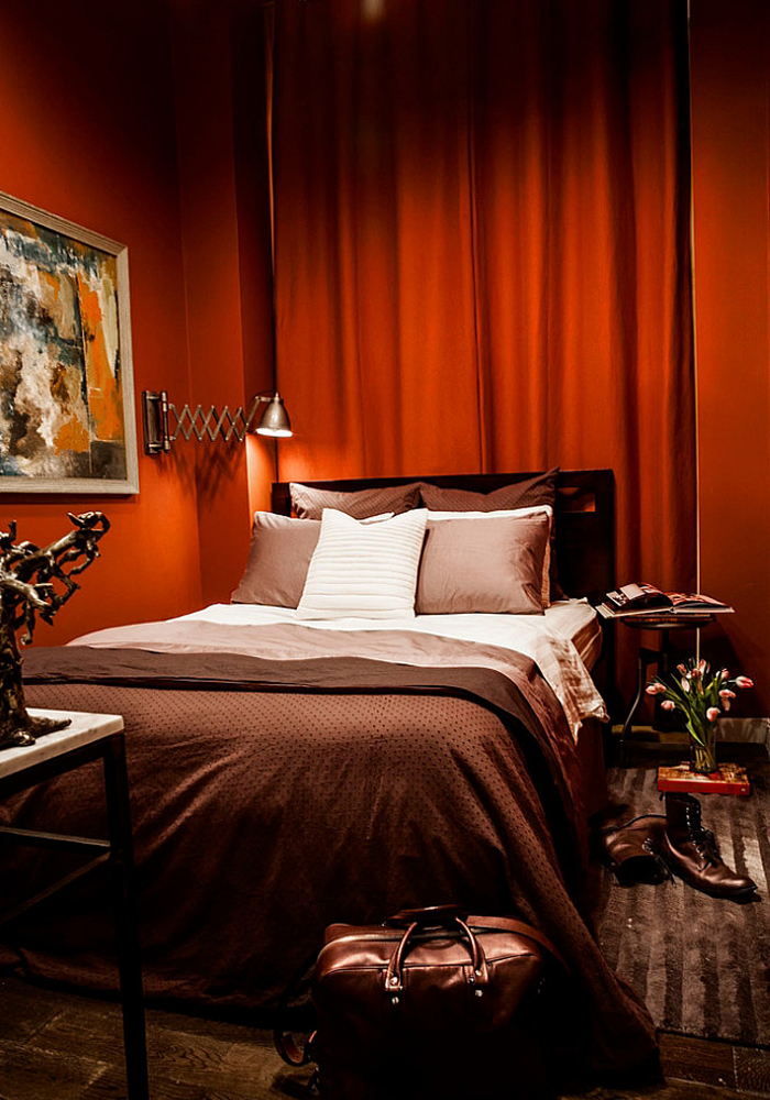 | Just like in the case of blue or yellow, there are many different shades of red that you can pick from. Consider the entire range before you make the final choice. Maybe all your bedroom needs is a touch of orange-red or rich scarlet to give it the enchanting vibe that you are after! But in the case of red, it is the finish that seems to make the biggest difference in the atmosphere of the room.